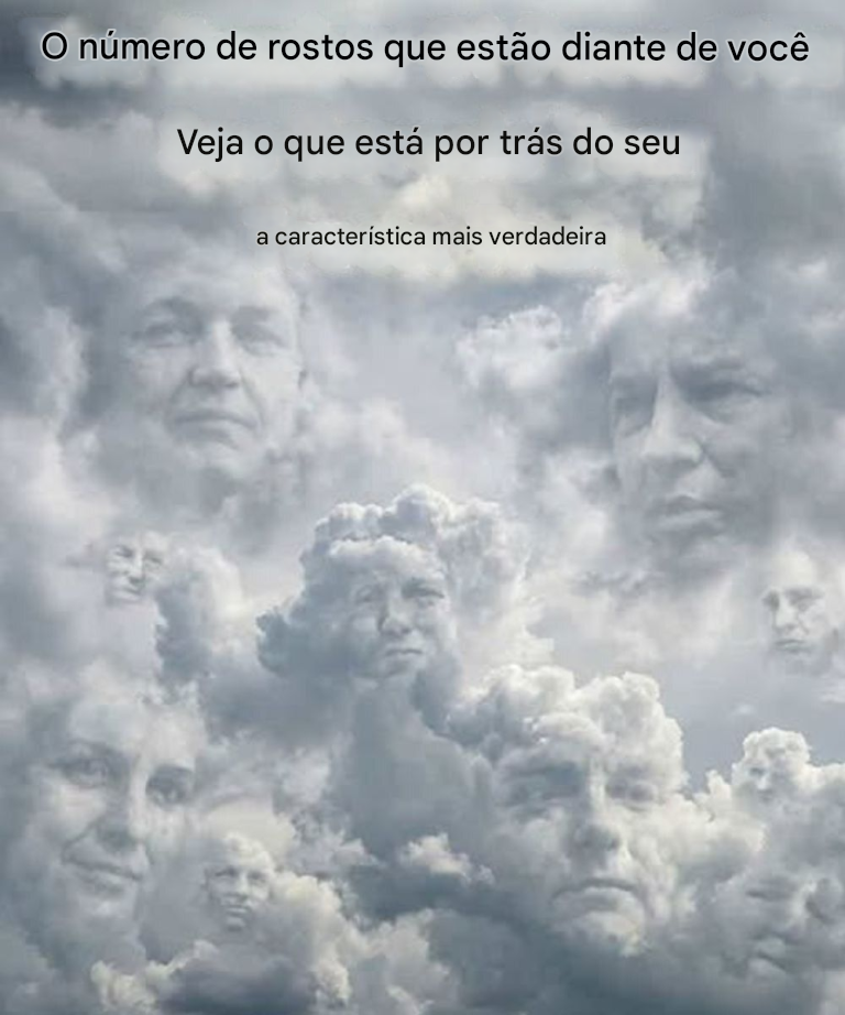 À primeira vista, a imagem parece simples e quase reconfortante. Um céu calmo. Nuvens que flutuam suavemente, sem pressa. Nada de dramático. Mas se você parar por um instante e observar com atenção, algo interessante começa a acontecer. Formas lentamente se revelam. Luz e sombra se alteram. E logo você começa a ver rostos emergindo silenciosamente das nuvens.